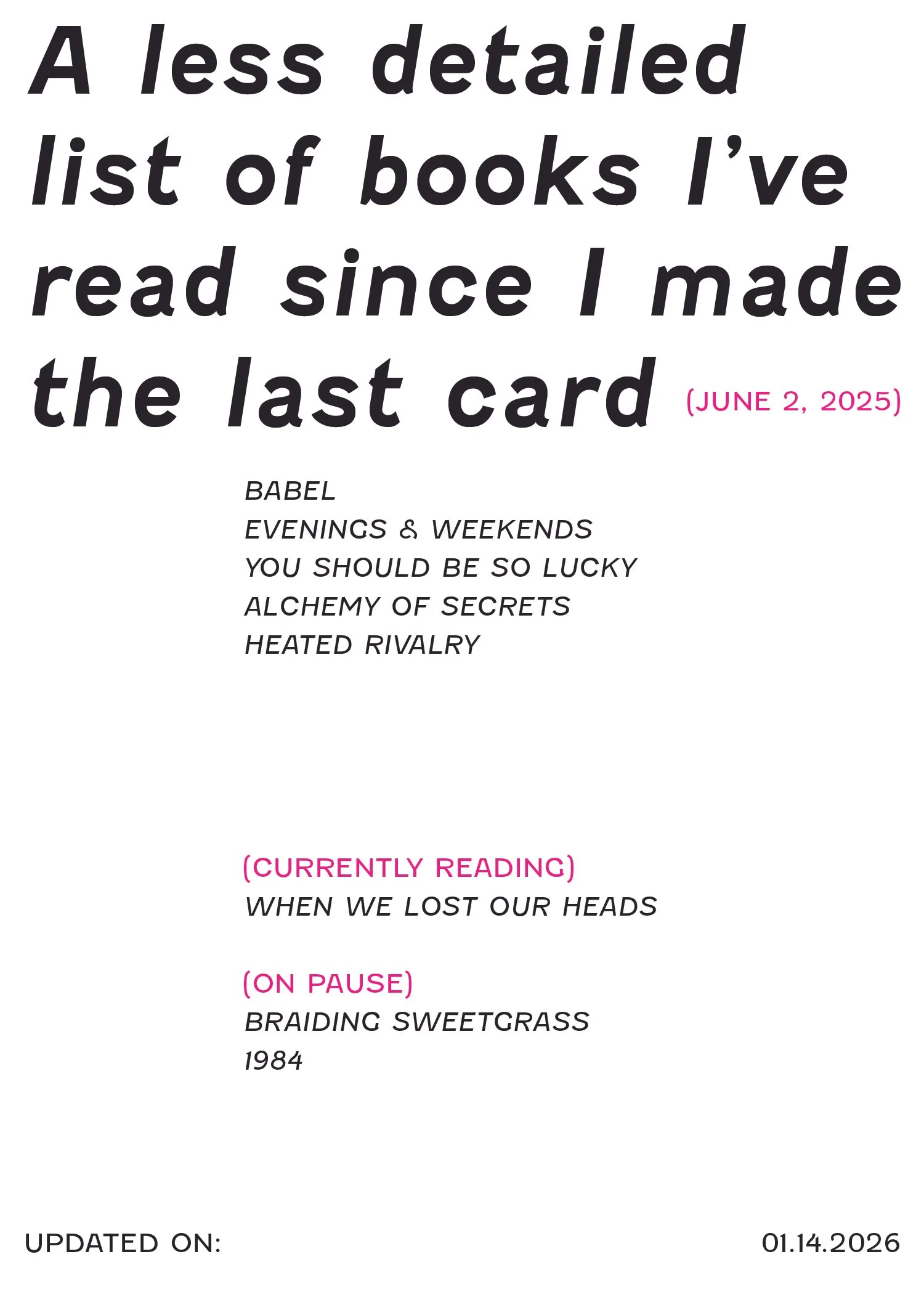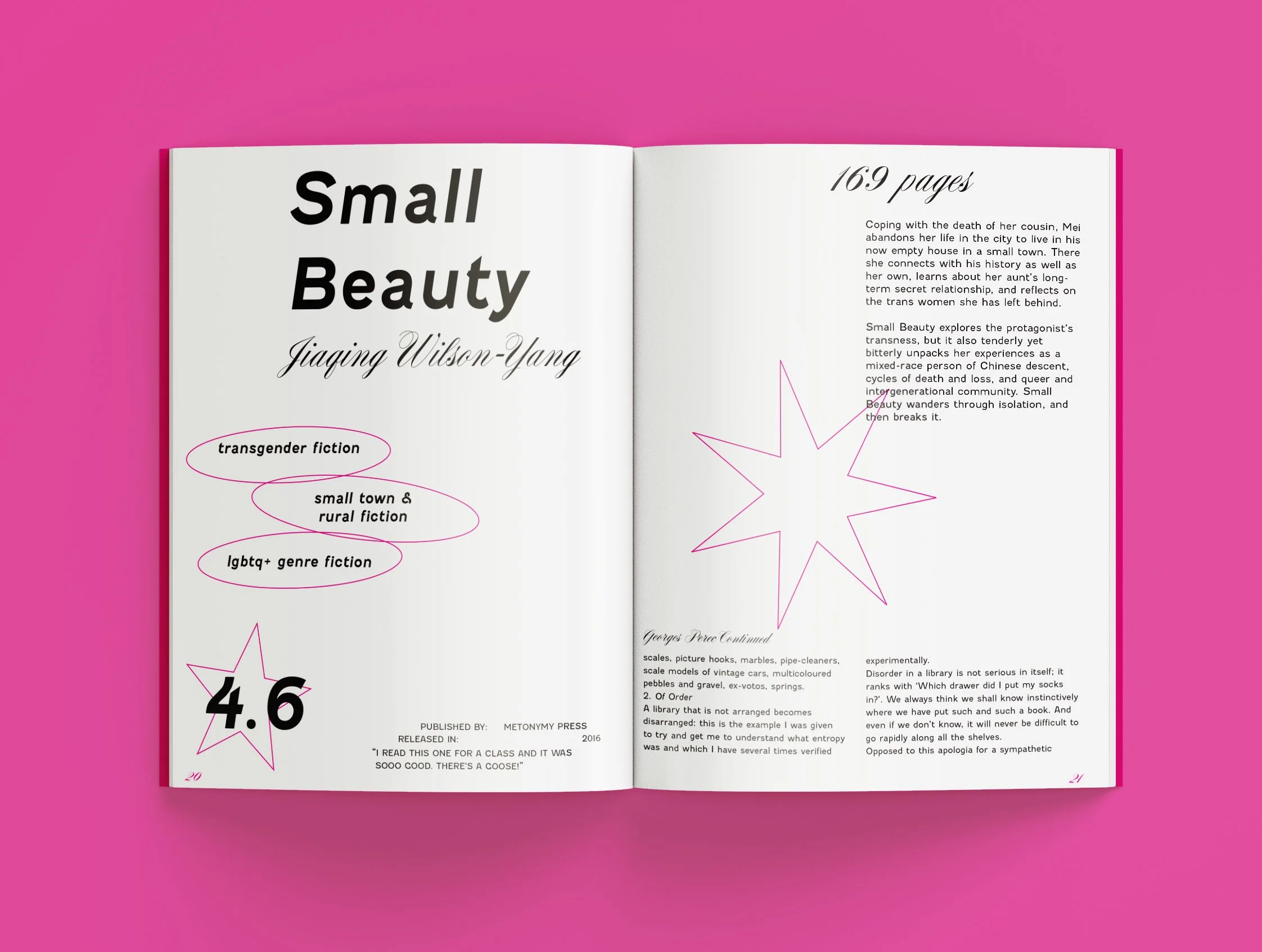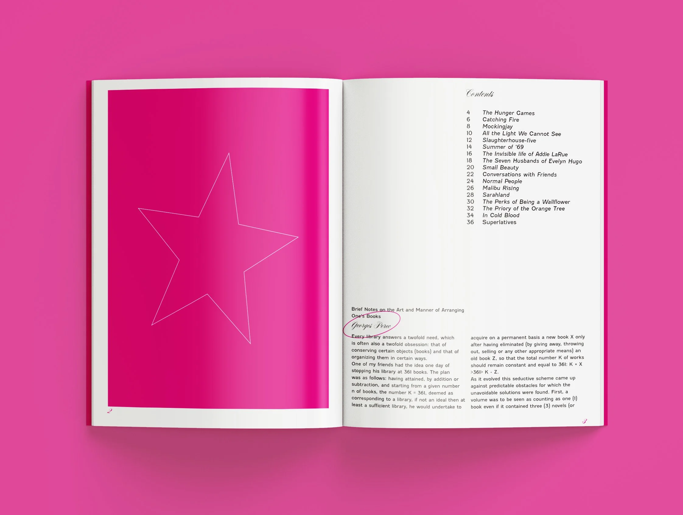 A publication created using my opinions, Amazon data, and the Brief Notes on the Art and Manner of Arranging One’s Books by Georges Perec.
