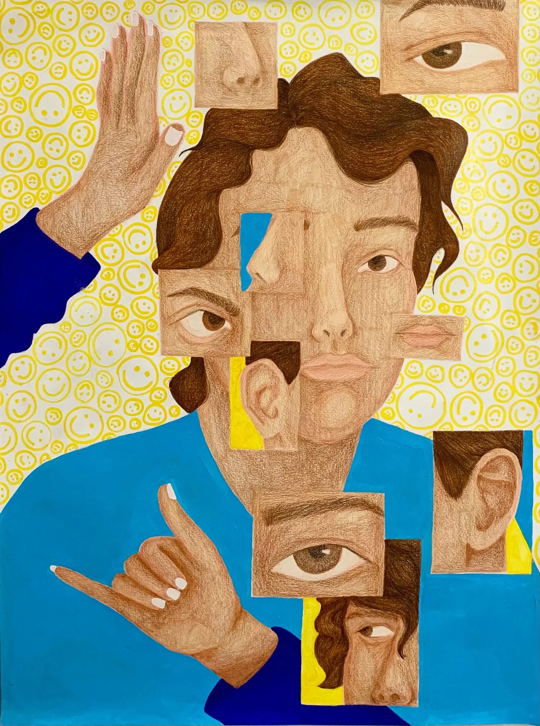 What Did You Say?, 2021. marker, colored pencil, and paint marker on paper.