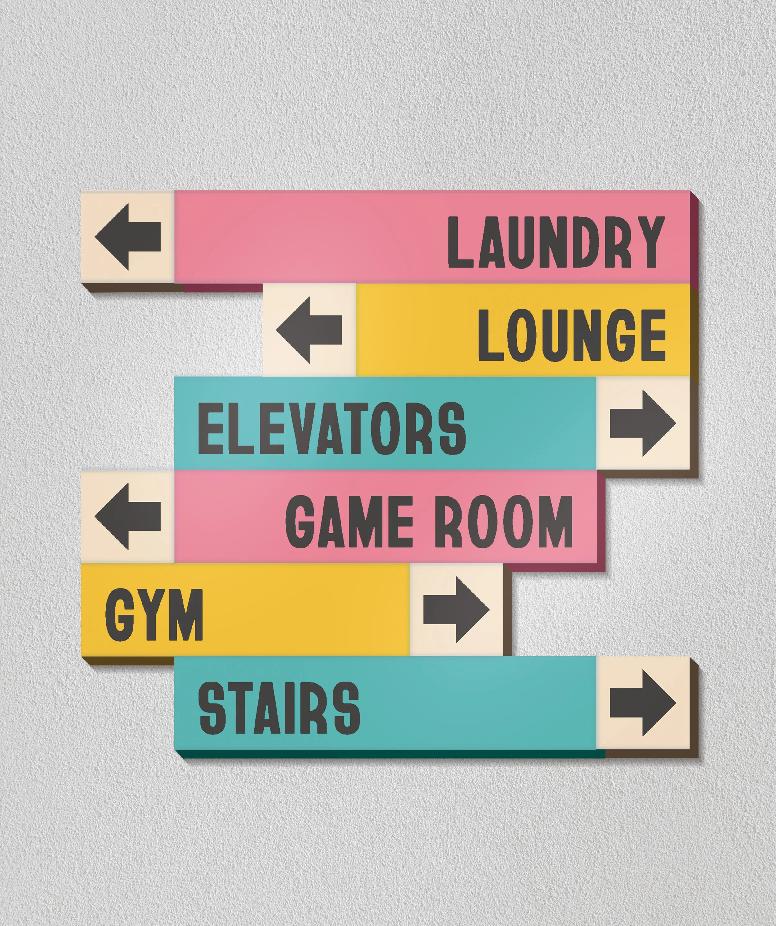 This was the worst part. We knew we wanted the design to be abstract, expansive, and color coordinated. By this point, there were no names for the buildings but we did assign them colors. For the building with warmer colors, we chose to create a gradient from the bottom up. The cooler colors lended themselves to a wave across the building. The idea behind both designs is that they are limited to the building, but expand past those borders.